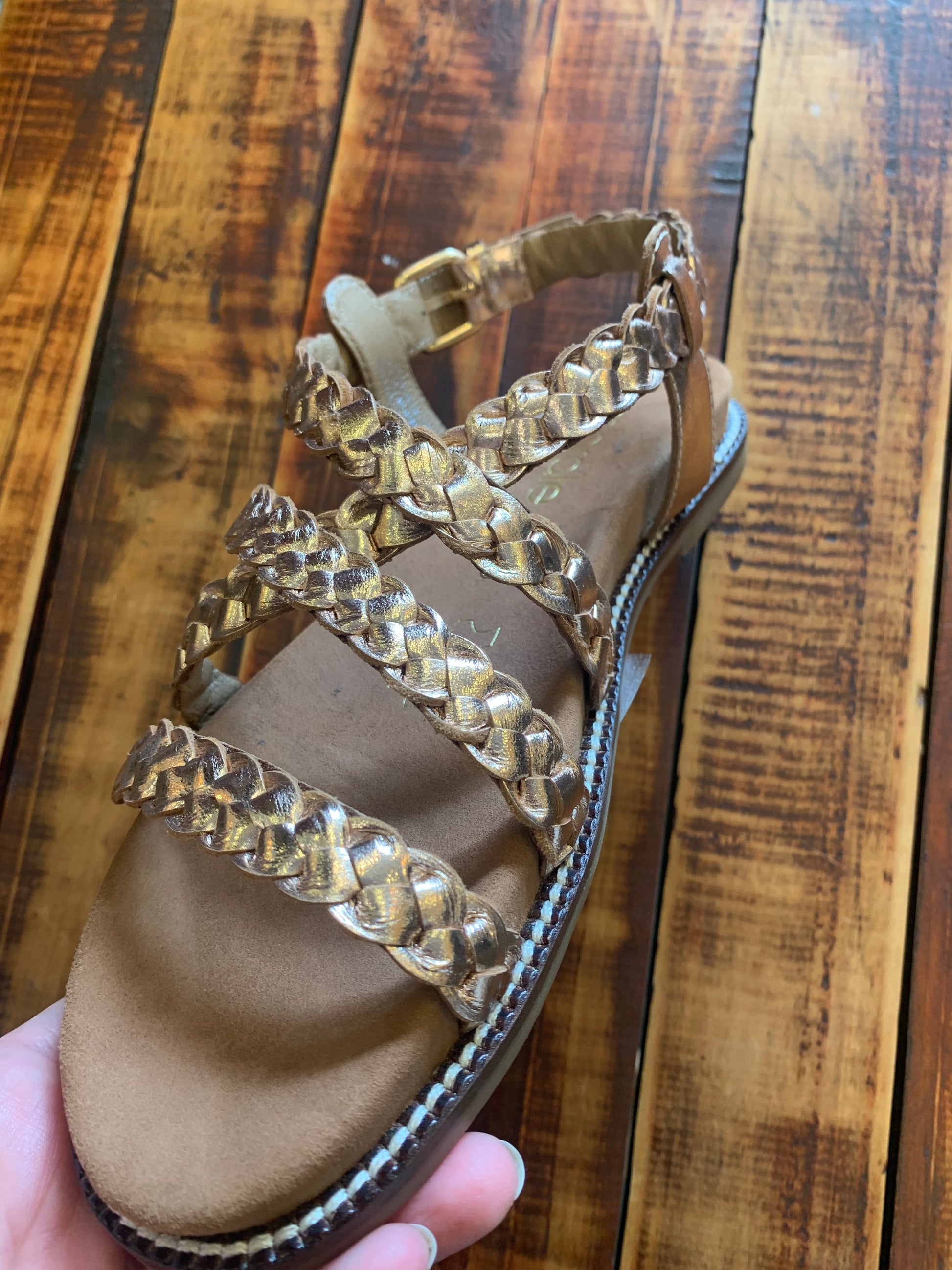 Dale un toque brillante a tu estilo con estas sandalias bajas de cuero metalizado. Cómodas y versátiles, son perfectas para iluminar cualquier look sin perder frescura ni comodidad. ¡Prepárate para destacar con cada paso!
